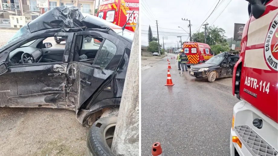 Segundo o Corpo de Bombeiros, a colisão foi lateral, tal qual fez ambos ficarem encarcerados, mas conscientes e orientados no interior. Após avaliarem a situação, a equipe retirou as vítimas pela porta do lado da carona.