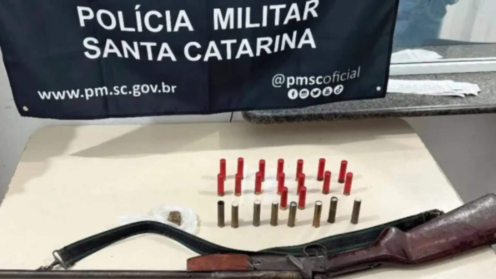 Durante a ação, a polícia encontrou uma espingarda calibre 32 sem marca e registro, além de 16 munições intactas e 8 recarregáveis do mesmo calibre. Entretanto, ele negou ter usado a arma para ameaçá-la. Também foi localizado um pequeno torrão de maconha na cena.
