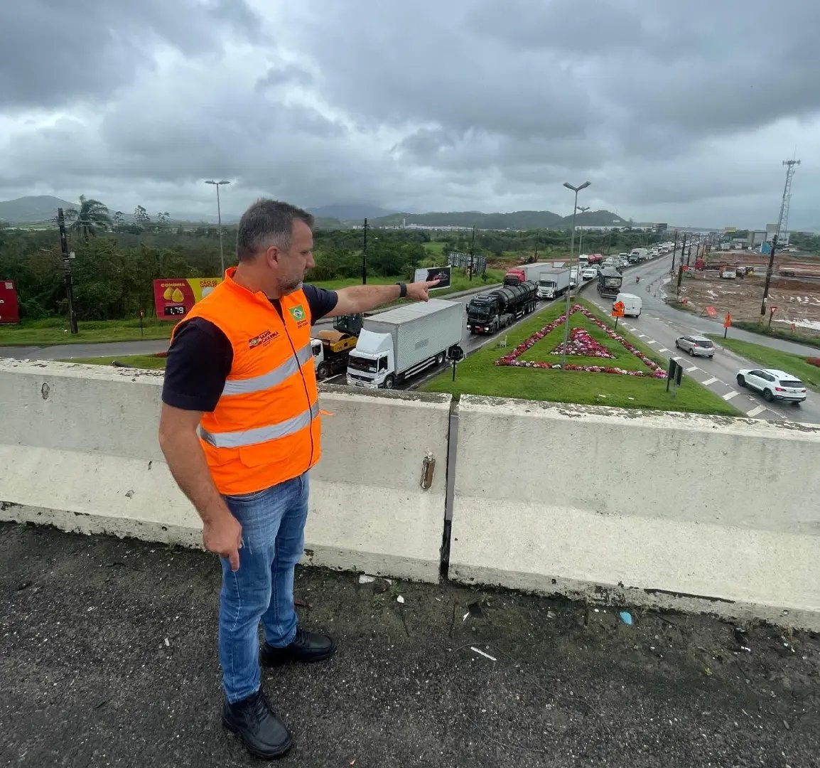 O secretário da Infraestrutura e Mobilidade (SIE), Jerry Comper, vistoriou o andamento das obras nesta segunda-feira (4), e conferiu a rápida evolução de mais esta importante ação do governo de Santa Catarina, dentro do Programa Estrada Boa, o maior da história rodoviária do Estado. O planejamento da Secretaria da Infraestrutura e Mobilidade é para que a empresa vencedora da licitação conclua primeiro as alças de acesso da Antônio Heil à BR-101, medida que já dará mais fluidez ao tráfego.