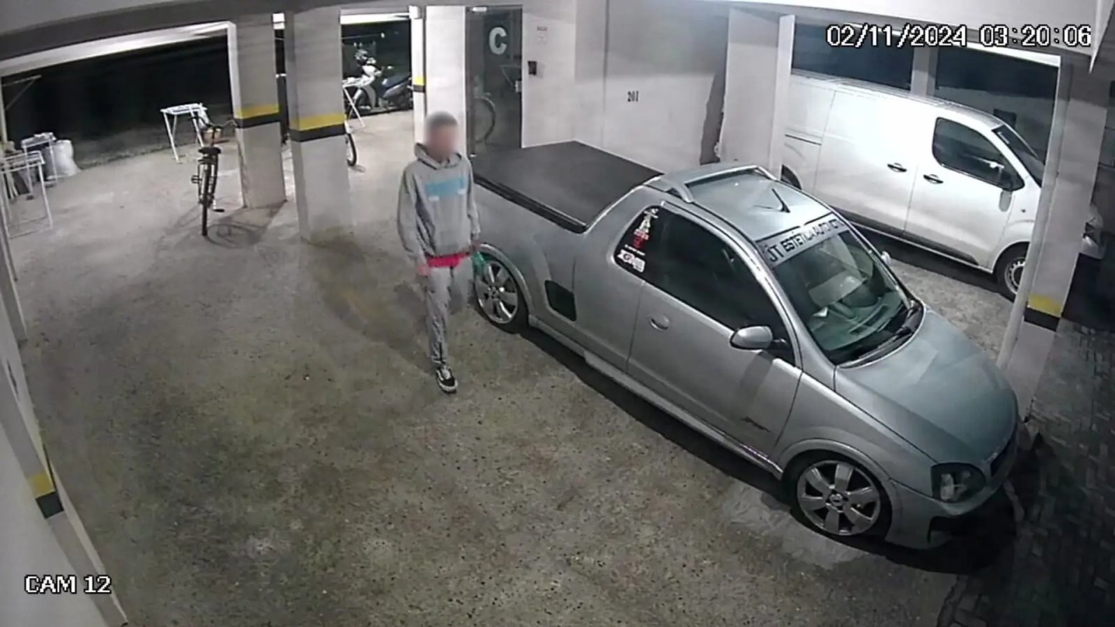 Uma câmera de segurança flagrou o exato momento em que uma motocicleta foi furtada na madrugada deste domingo (3). O crime ocorreu na garagem de um condomínio residencial, no Centro de Brusque, por volta de 03h20.