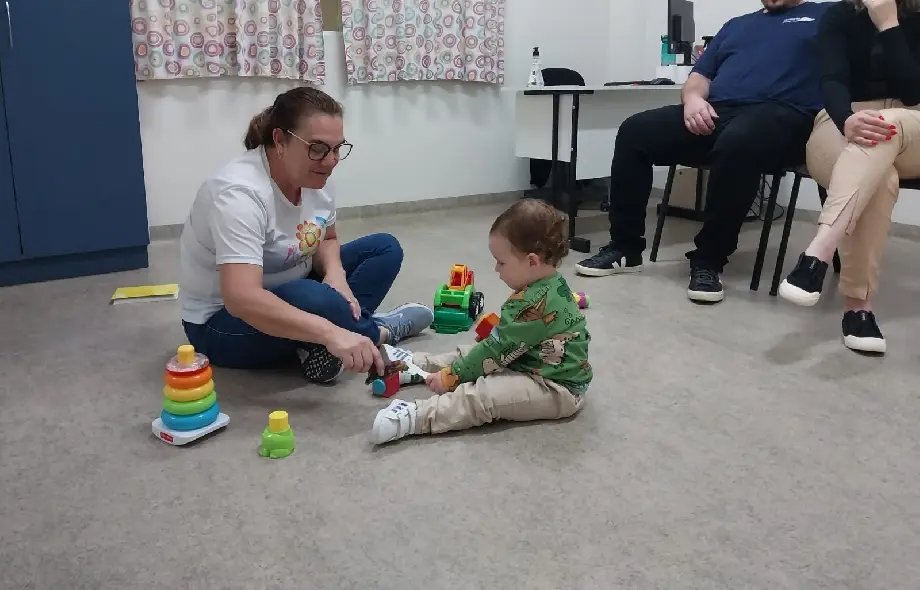 Tatiana destaca que durante os atendimentos, as pedagogas observam todos os domínios do desenvolvimento da criança: linguagem, cognição, desenvolvimento motor, questões de interação social e comportamentais. Tudo isso, enquanto ela brinca.