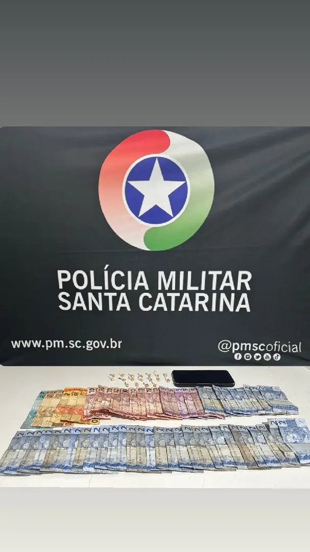 Durante a revista pessoal, foi constatado que ele trazia consigo em uma bolsa no peitoral, contendo 18 porções de crack e grande quantidade de dinheiro em notas pequenas, totalizando R$ 455,00, oriundas da venda dos ilícitos, além de um aparelho celular de cor azul.