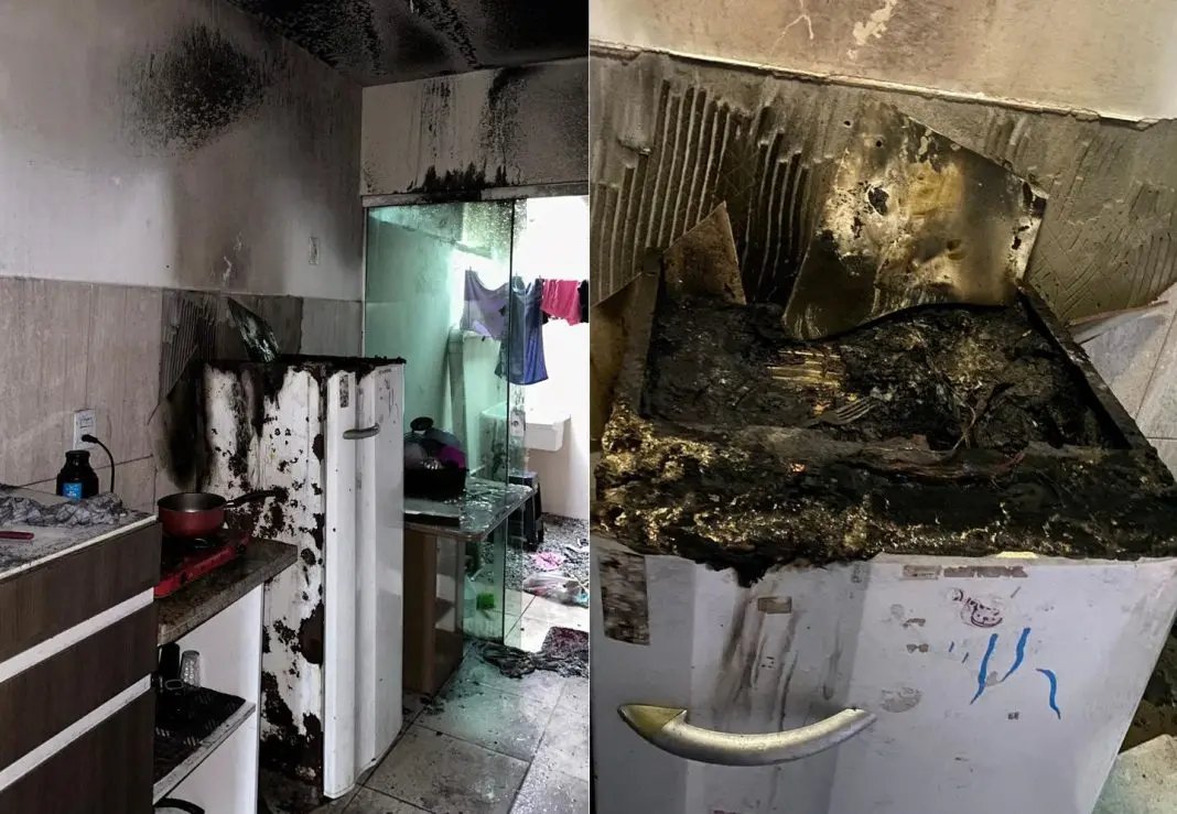 Segundo os bombeiros, ao chegarem ao local, as equipes encontraram um sobrado geminado com uma fumaça densa saindo pela janela superior. Foi necessária a entrada forçada pelo portão e pela porta da casa, sendo que foi avistado o foco do incêndio estava na cozinha, próximo à geladeira.