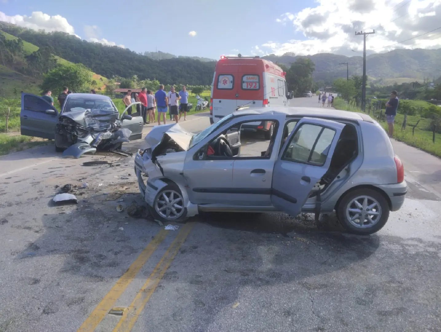 De acordo com os bombeiros, ao total, quatro pessoas foram envolvidas no acidente. O condutor de 56 anos do Voyage estava consciente, orientado e com sinais estáveis, apresentando ferimento corto-contuso na boca e possível fratura de nariz. Ele foi extraído do interior do carro e deixado aos cuidados da equipe do Samu de Nova Trento.