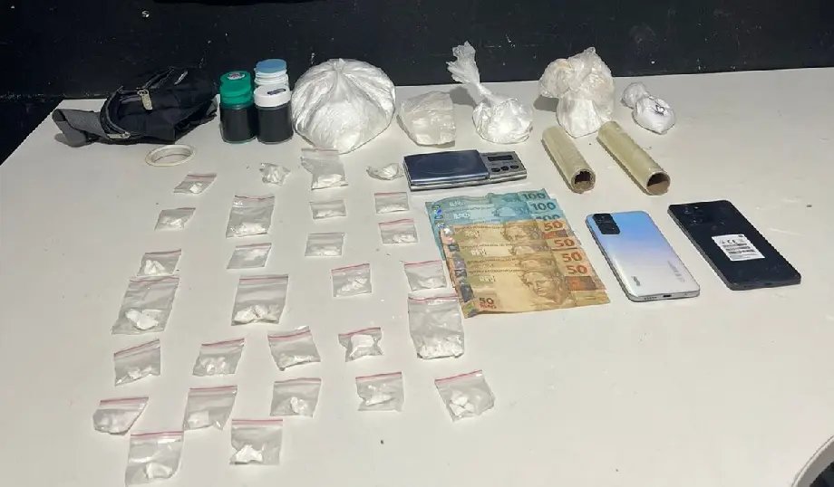 Com o apoio do Tático da Polícia Militar, o veículo foi abordado. Dentro do carro estavam um homem de 47 anos e sua esposa, de 46. Inicialmente, ele negou envolvimento com o tráfico, mas a mulher confessou o crime e autorizou a entrada dos policiais na residência, indicando onde estavam escondidas as drogas.