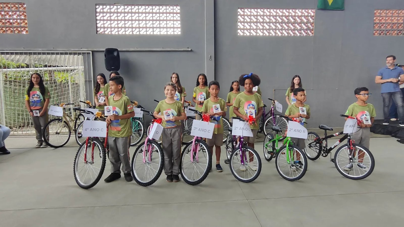 A solenidade iniciou com o hasteamento da Bandeira Nacional e a execução do Hino Nacional. Na ocasião, 28 alunos receberam certificados de Honra ao Mérito e bottons, reconhecendo os destaques em mérito disciplinar e intelectual. Além disso, 14 bicicletas foram entregues aos alunos com melhor desempenho na categoria mérito Estudante Cidadão, premiação patrocinada pelo vereador Rick Zanata.