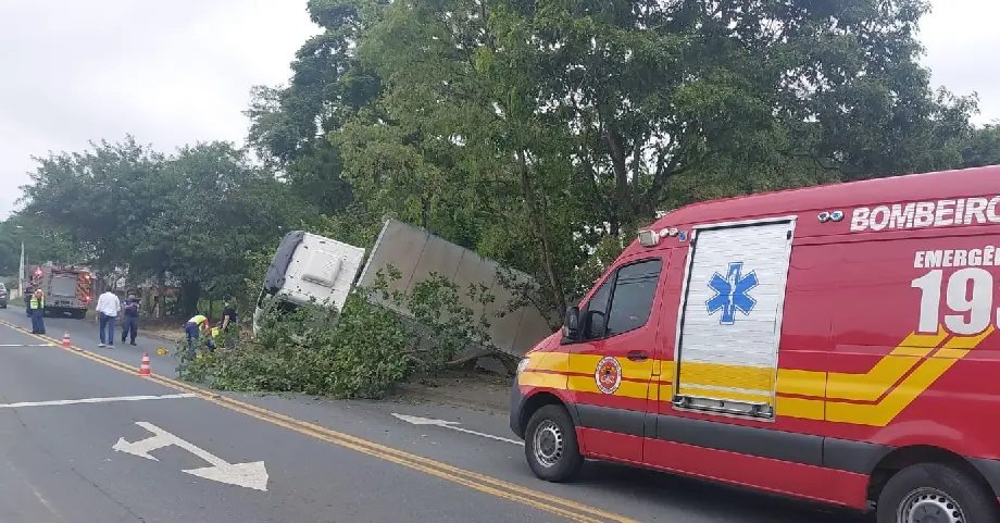 Os bombeiros informaram que o condutor do caminhão estava caminhando no local do acidente e apresentava um ferimento corto-contuso na região da cabeça e suspeita de fratura na clavícula direita. Após os procedimentos de atendimento pré-hospitalar realizados pela equipe, ele foi encaminhado ao Hospital Santa Isabel para receber cuidados médicos.