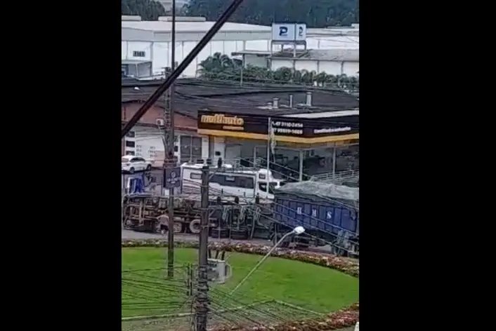 Parte de caminhão tombou no início da tarde desta terça-feira (10), na rotatória de acesso à rodovia Ivo Silveira, no bairro Steffen, em Brusque. O acidente foi registrado por volta das 12h03.