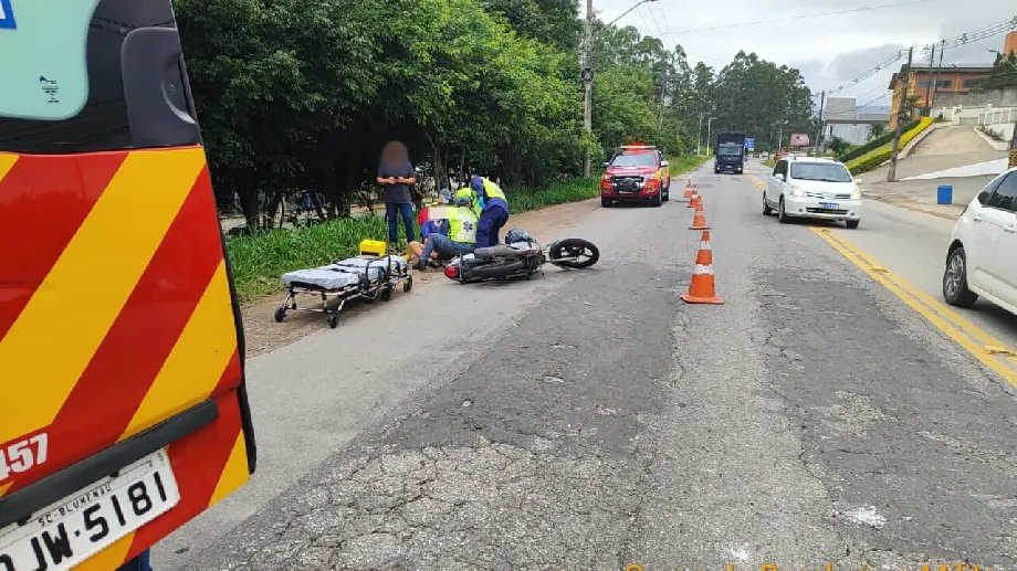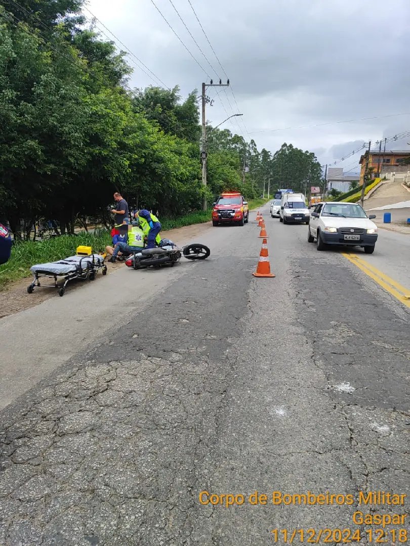 Uma colisão frontal entre uma moto e um caminhão deixou um motociclista ferido na tarde desta quarta-feira (11), na rodovia Ivo Silveira, bairro Santa Terezinha, em Gaspar. O acidente foi registrado por volta das 12h06.