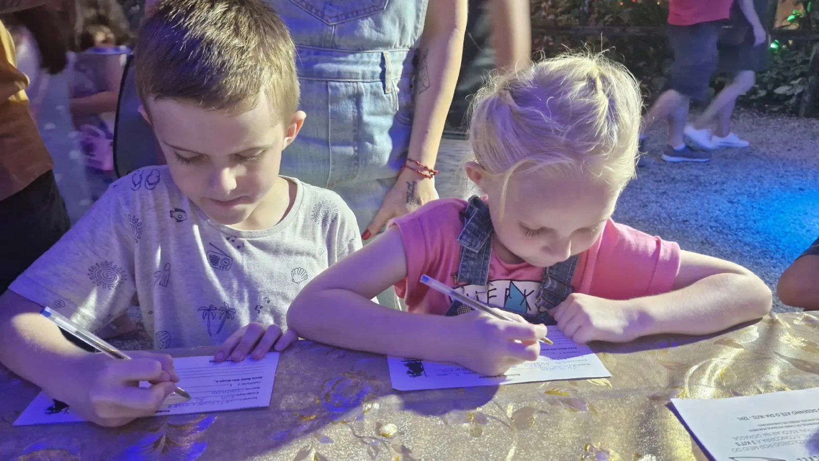 Assim como Felipe, a noite também foi especial para seus primos Christopher e Victoria Aparecida Correa da Cruz (6). Moradores de Brusque, esta não foi a primeira vez que os gêmeos visitaram a Pelznickelplatz, mas neste final de semana a visita teve um significado especial para eles. "Nós viemos todos os anos aqui prestigiar esse evento lindo com as crianças, que já estão habituadas e conhecem a tradição. Mas esse ano, tanto o Christopher quanto a Victoria esperavam ansiosos para vir e, especialmente, fazerem suas cartas. Isso porque eles aprenderam a escrever e, pela primeira vez, estão escrevendo suas próprias cartinhas para São Nicolau", contou o pai Clayton Corrêa da Cruz.