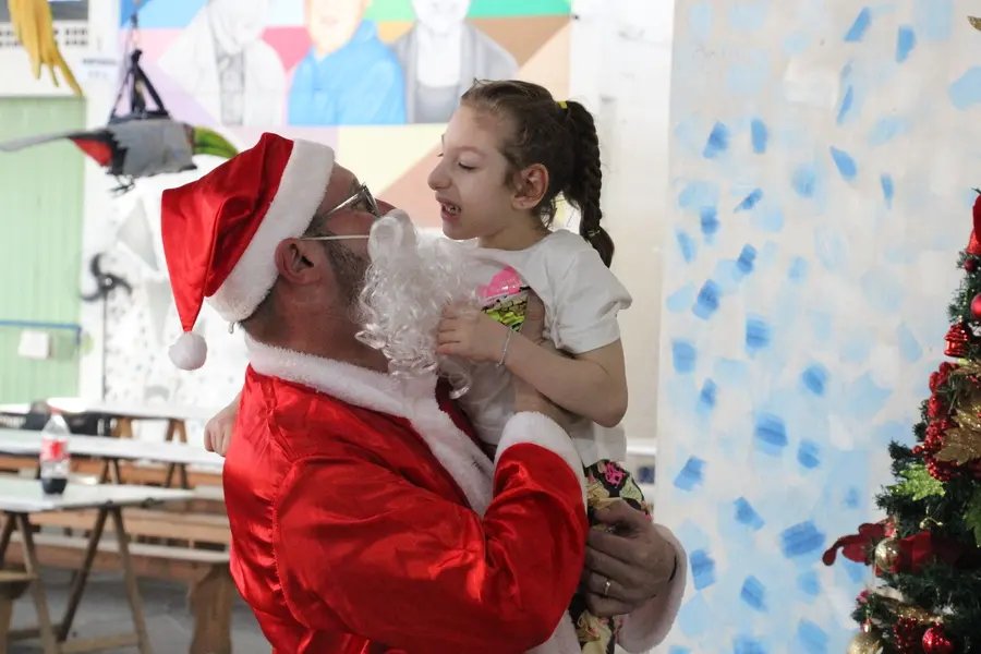 “Essa segunda parte da nossa confraternização foi ainda mais especial, colocamos nas nossas redes que precisávamos de um voluntário para ser o Papai Noel e para a nossa surpresa quem se apresentou foi o pai de uma das crianças que é atendida aqui na Apae. Ele distribuiu presentes que foram doados e também carinhosamente adquiridos pelo nosso Clube de Mães. O nosso Papai Noel ainda preparou uma surpresa para as crianças”, completou Rose.