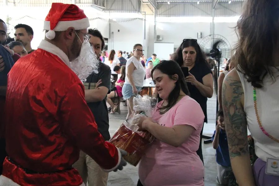 A tarde de sábado, 14 de dezembro, foi especial para os usuários, colaboradores e familiares da Associação dos Pais e Amigos das Especiais de Brusque (Apae de Brusque). O evento de encerramento das atividades de 2024, realizado na sede da instituição, contou com um café coletivo, chegada do Papai Noel e entrega de presentes.
