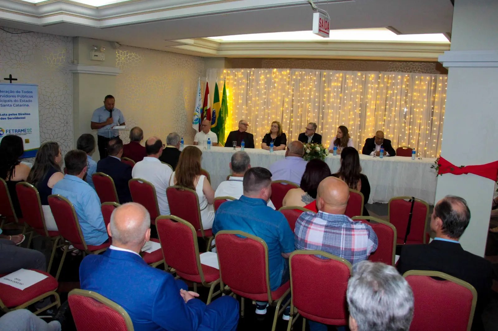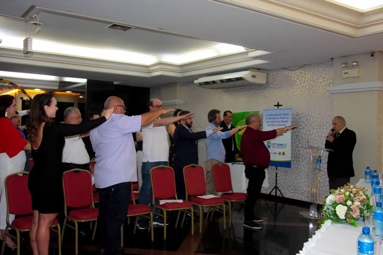 A Federação dos Trabalhadores no Serviço Público Municipal do Estado de Santa Catarina - FETRAMESC, promoveu uma ampla agenda de atividades em Blumenau, que teve como destaque a posse da nova diretoria eleita para o mandato 2024-2029. As atividades ocorreram entre os dias 12 e 13 de dezembro no Hotel Europa, com a participação de diretores, conselheiros fiscais e convidados, reafirmando o compromisso da Federação com a valorização dos servidores públicos municipais.