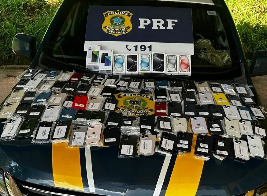 Na manhã desta sexta-feira (20) policiais rodoviários federais localizaram na BR-282, em Pinhalzinho, 87 celulares Iphone e um videogame de última geração escondidos em compartimentos falsos de um automóvel.