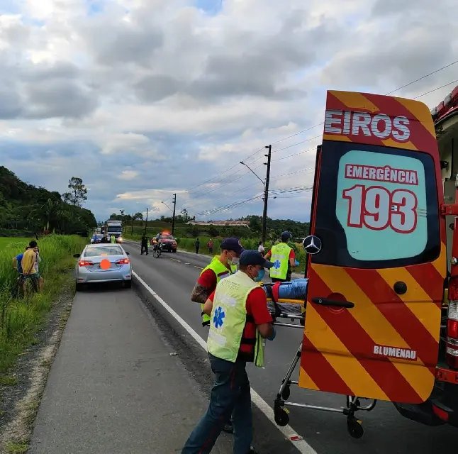 O motociclista, de 34 anos, que se envolveu em uma colisão frontal com um carro na rodovia Ivo Silveira, no início da noite deste sábado (21), foi encaminhado ao Hospital de Gaspar pela equipe do ASU-457. Conforme o Corpo de Bombeiros Militar (CBM) de Gaspar, a vítima estava consciente, desorientada e com escoriações generalizadas pelo corpo.