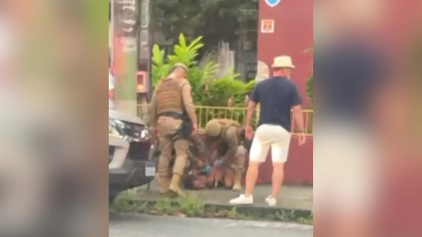 Através do vídeo anexado a esta matéria, é possível observar que os policiais tentam se aproximar dela, mas ela se afasta a cada tentativa da guarnição. Em um dado momento, a mulher senta ao chão e arremessa algo contra os três policiais. Outra pessoa chega próximo a ela e tenta dialogar. Ao final das imagens, a mulher aparece sendo detida pela guarnição, mesmo enquanto ainda apresentava resistência física.