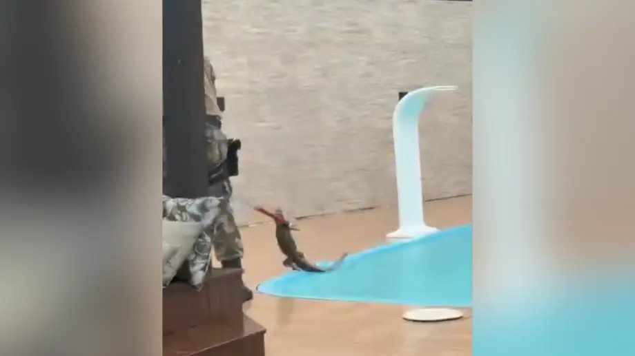 O vídeo anexado à matéria mostra um dos policiais militares ambientais utilizando um laço de contenção para retirar o réptil da água, ação essa que ocorreu de forma pacífica.