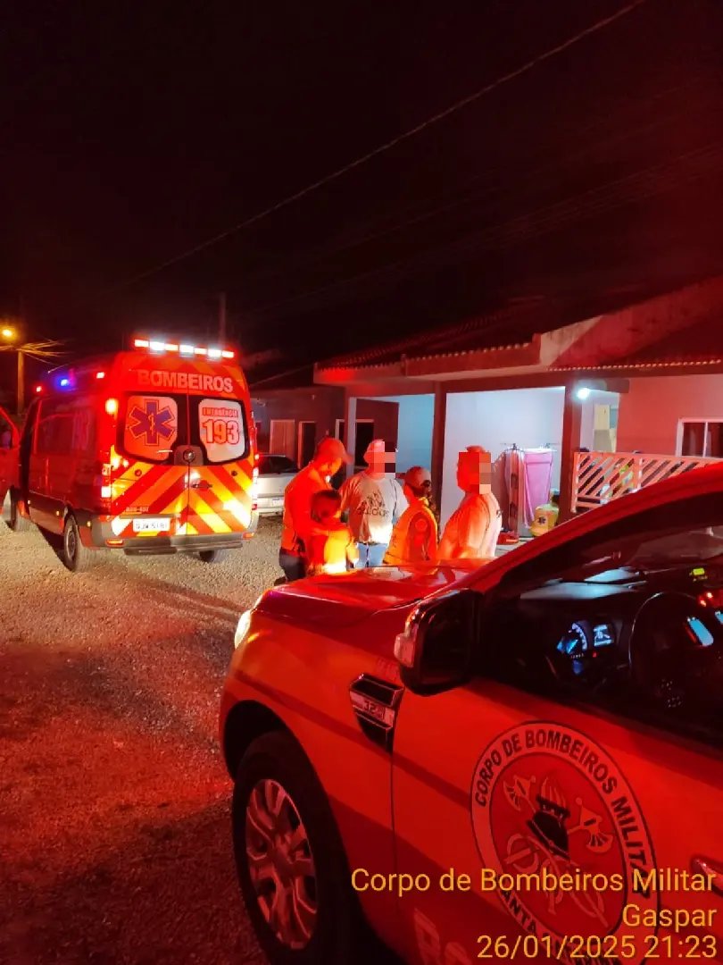 Após os atendimentos e avaliações, o menor e a mulher de 39 anos foram conduzidos ao Hospital de Gaspar para receber cuidados médicos.
