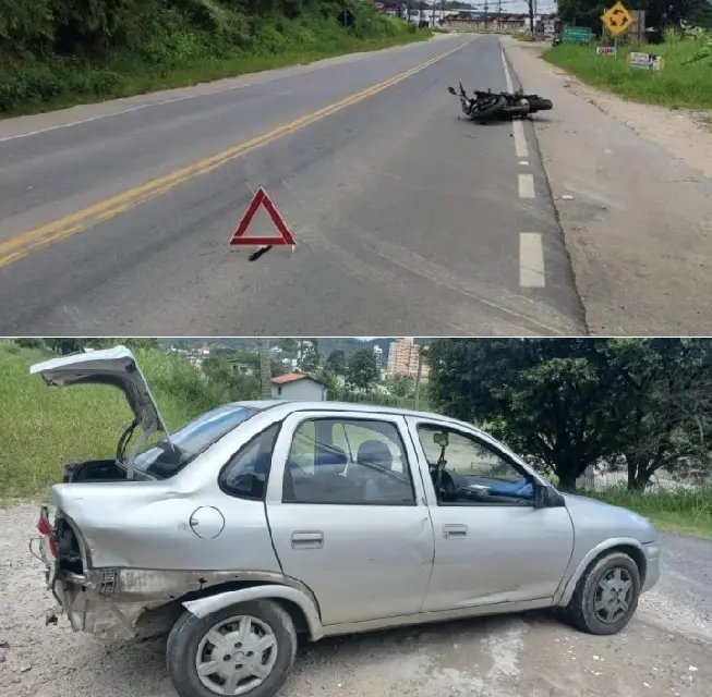 Um homem de 36 anos ficou ferido em Brusque na tarde deste sábado (8), após uma colisão entre um carro e uma moto. O acidente ocorreu por volta das 13h15, na rodovia Ivo Silveira, no bairro Steffen.