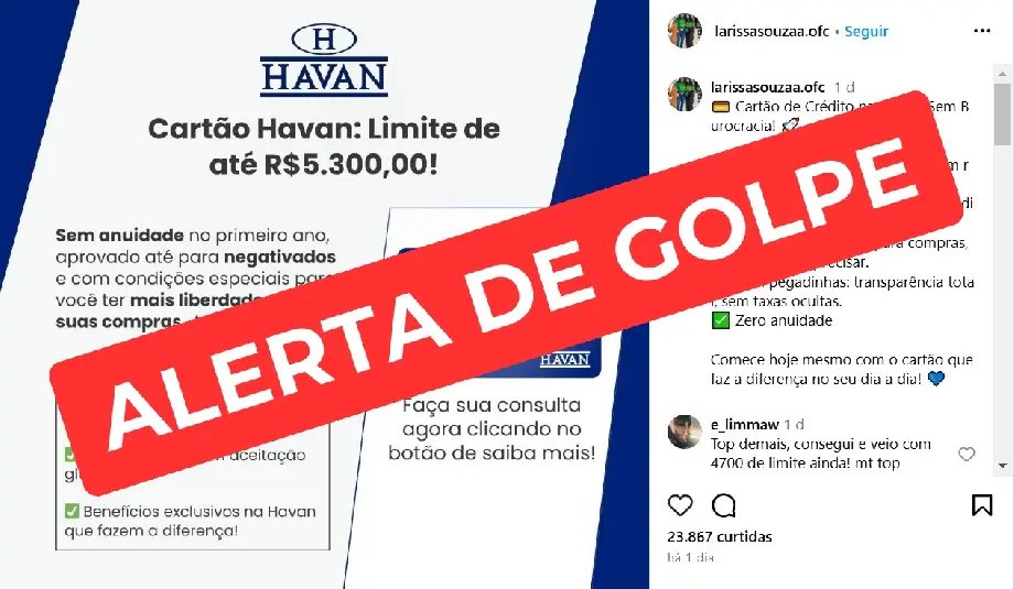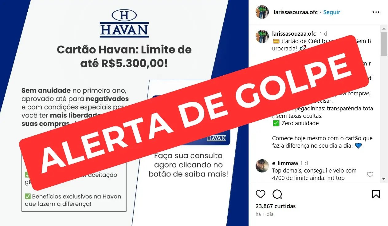 A Havan reforça que não oferece esse tipo de serviço e jamais cobra qualquer valor para a obtenção do Cartão Havan. A liberação do cartão ocorre exclusivamente nas lojas físicas, após análise de crédito.