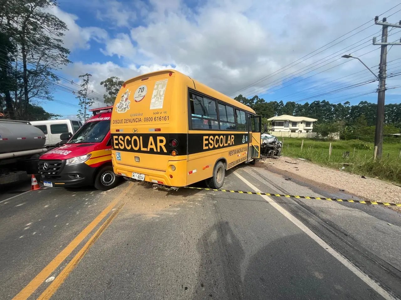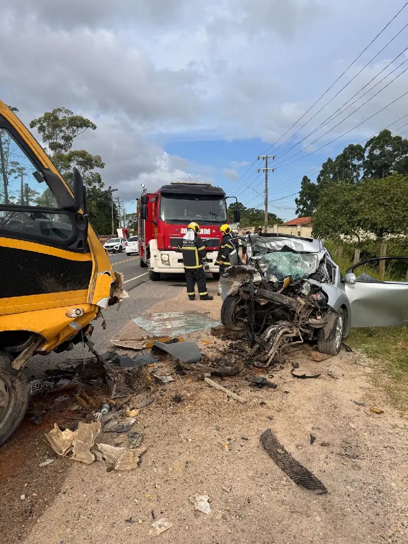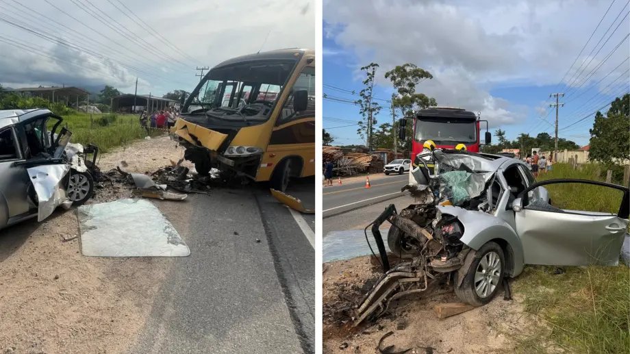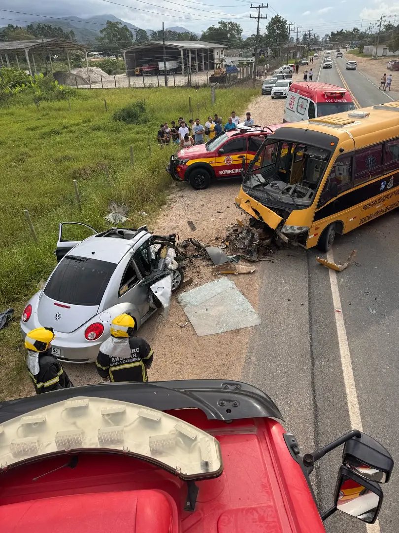 O Corpo de Bombeiros atualizou as informações sobre o acidente entre um ônibus escolar e um carro, que resultou em uma morte, na tarde deste sábado. A ocorrência foi registrada no bairro Nova Descoberta, em Tijucas, e aconteceu por volta das 16h20.