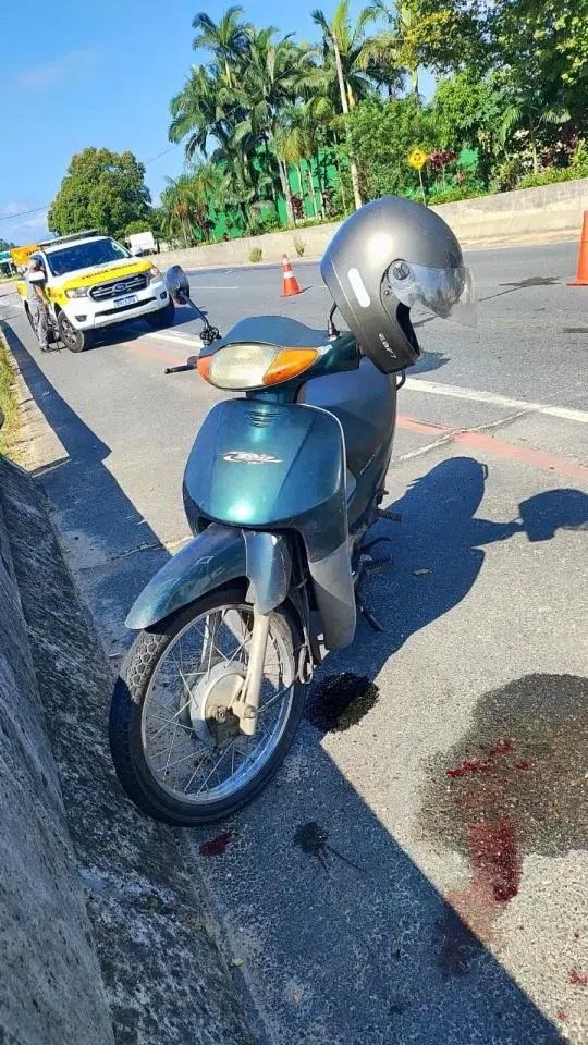 Segundo informações da Polícia Militar Rodoviária (PMRv), no local, a guarnição verificou que ambos os veículos transitavam pela rodovia no sentido Brusque para Itajaí quando, no quilômetro 23,850, o condutor da moto Honda Biz colidiu na lateral de um Fiat Uno ao tentar mudar de faixa.
