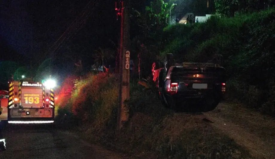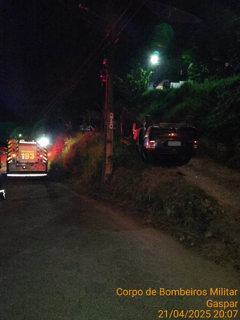 Na noite desta segunda-feira (21), um carro saiu da pista, caiu em um barranco de aproximadamente seis metros e capotou na rua Otto Nuss, no bairro Gaspar Grande, em Gaspar. O acidente ocorreu por volta das 19h14.