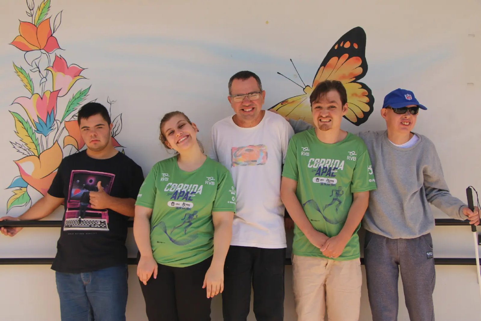 Ewerton Luiz de Araújo, 29 anos; Matheus Peirão Kempner, 16 anos; Jonatas Ristow Hofelmann, 42 anos; Jean Carlos Barni, 49 anos, e Milena Luisa Dada, 23 anos, estão contribuindo com a divulgação da corrida, que terá toda a renda revertida para a Apae e também para o projeto Pernas Solidárias.