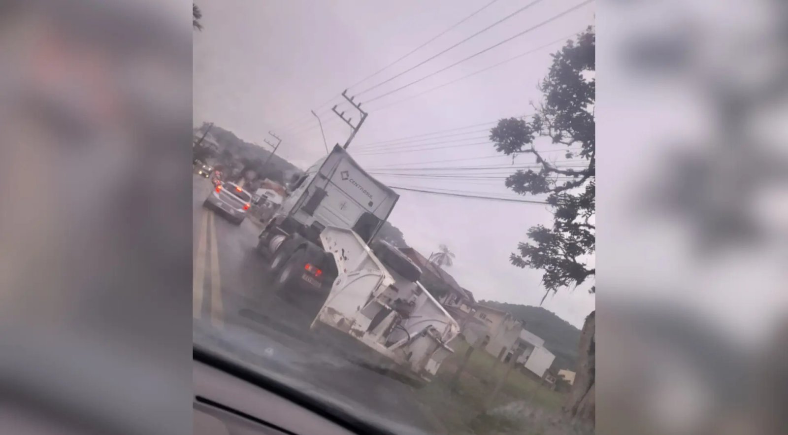 A Cidade FM teve acesso a imagens que mostram a carreta desacoplada, parada no meio da via. O trânsito no local está lento e exige atenção dos motoristas.