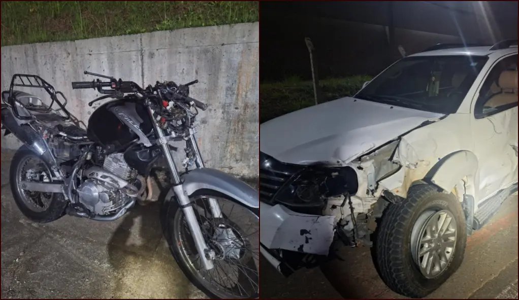 Segundo informações da Polícia Militar Rodoviária (PMRv), no local a guarnição verificou que uma Toyota Hilux com placas de Brusque, conduzida por um homem de 27 anos, trafegava pela marginal da rodovia no sentido Brusque para Itajaí. Na altura do km 6,550, a caminhonete teve sua trajetória interceptada por uma motocicleta Honda NX-4 Falcon, com placas de Itajaí, que seguia por baixo do viaduto em direção à rua Reynoldo Merlo e não respeitou a sinalização horizontal de “PARE”, colidindo com a Hilux.