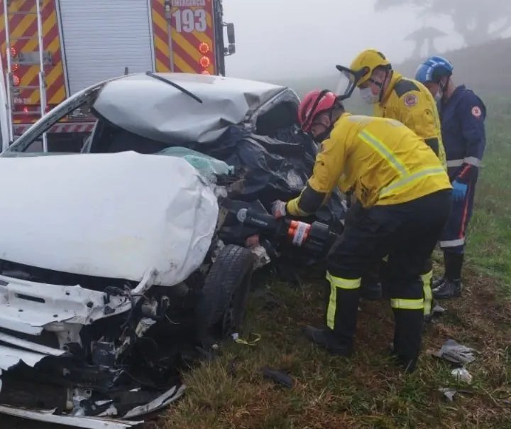 Um adolescente de 15 anos e uma mulher de 64 anos morreram em um grave acidente entre um carro e um ônibus na manhã desta segunda-feira (19). A colisão frontal ocorreu por volta das 7h, na BR-470, em Campos Novos, no Meio-Oeste catarinense.