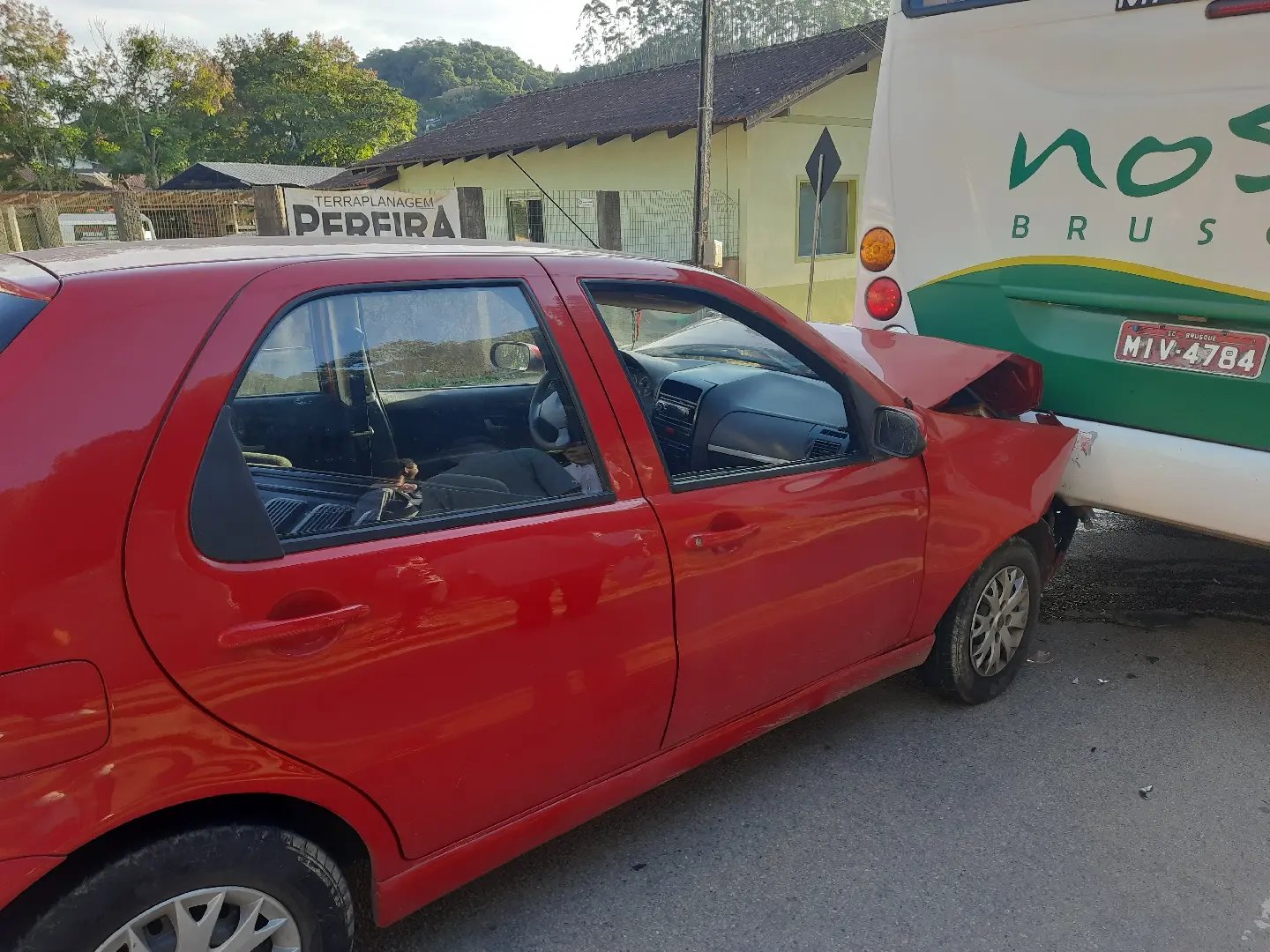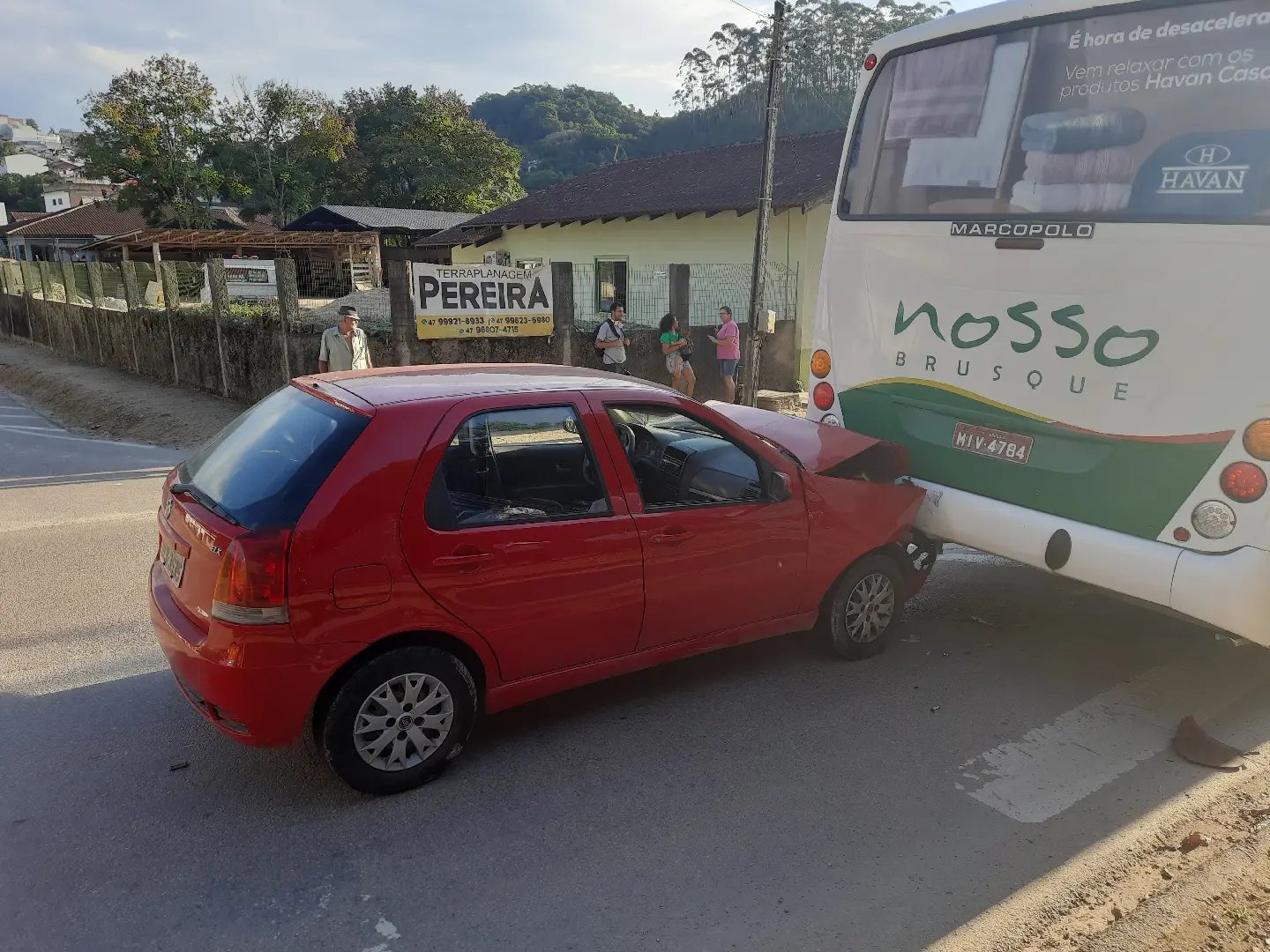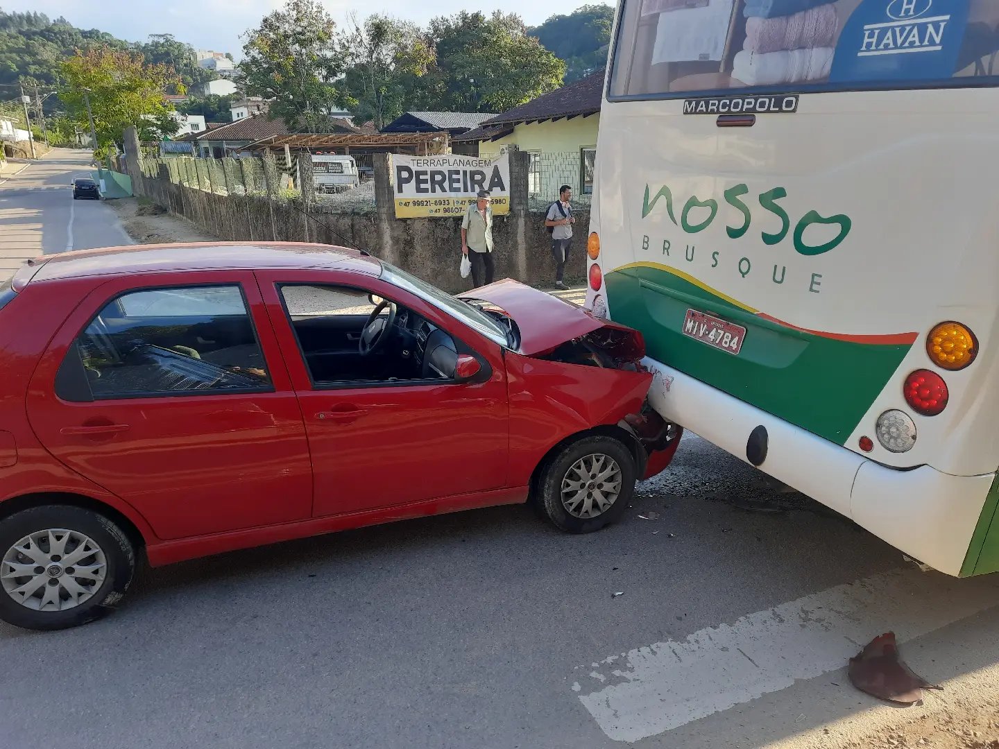 Na tarde desta terça-feira (20), o Corpo de Bombeiros de Brusque foi acionado para atender a uma colisão entre um carro e um ônibus. O acidente ocorreu por volta das 15h36, na rua Poço Fundo.