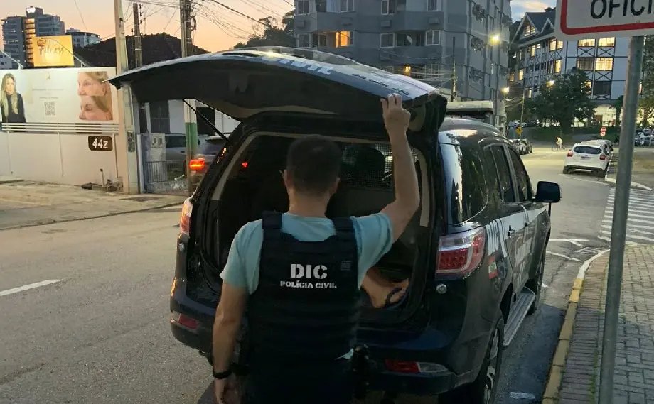 Posteriormente, ele foi encaminhado ao Presídio Regional de Brusque, onde permanecerá à disposição da Justiça.
