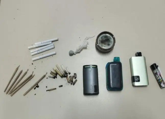 Com sua autorização e na presença da diretora, os policiais encontraram seis cigarros de substância com odor e características semelhantes à maconha dentro de um frasco; uma porção de 1,5 grama de maconha envolta por uma sacola plástica dentro do dichavador; três cigarros eletrônicos e cinco cigarros comuns.