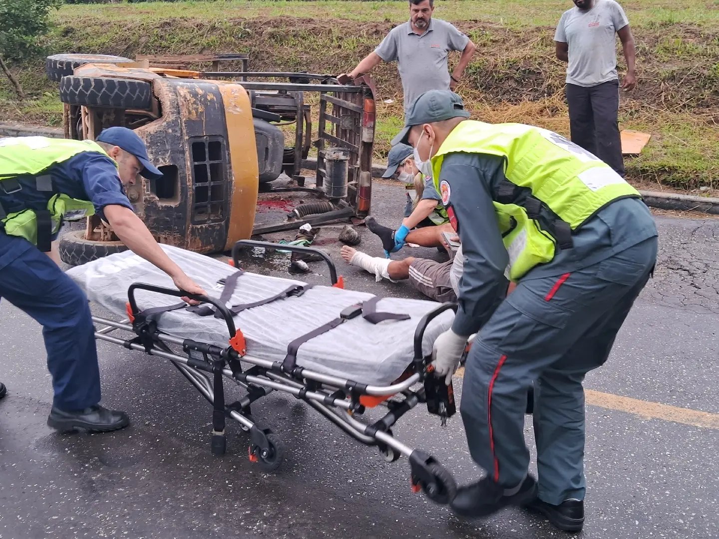 Um homem ficou ferido após tombar a empilhadeira que conduzia na manhã desta sexta-feira (23), em Brusque. O acidente aconteceu por volta das 07h55, na Rua Gilberto Hasmann, no bairro Rio Branco.