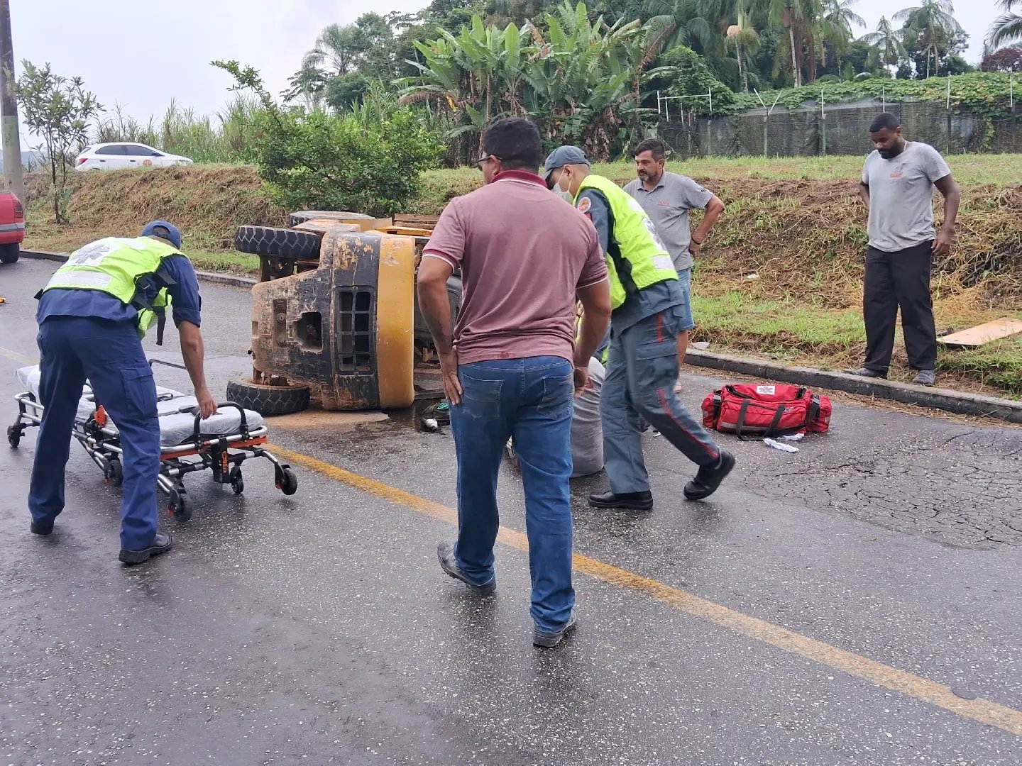Conforme apurou a Cidade FM no local, a vítima tem aproximadamente 40 anos e levaria paletes até uma empresa próxima, quando o veículo tombou e caiu sobre sua perna.