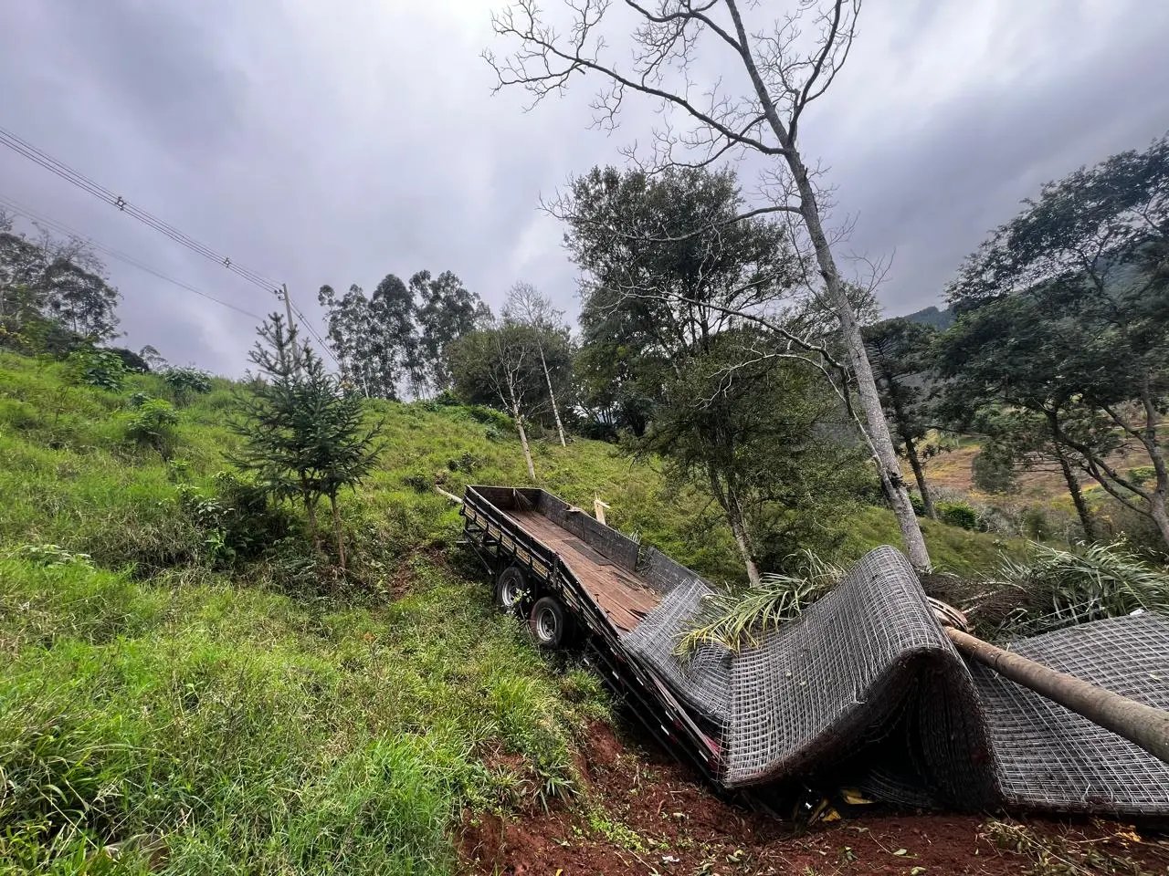 De acordo com informações do Corpo de Bombeiros, ao chegarem ao local os socorristas encontraram o caminhão em uma área de difícil acesso, completamente destruído após o impacto.