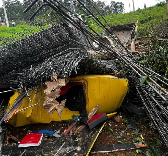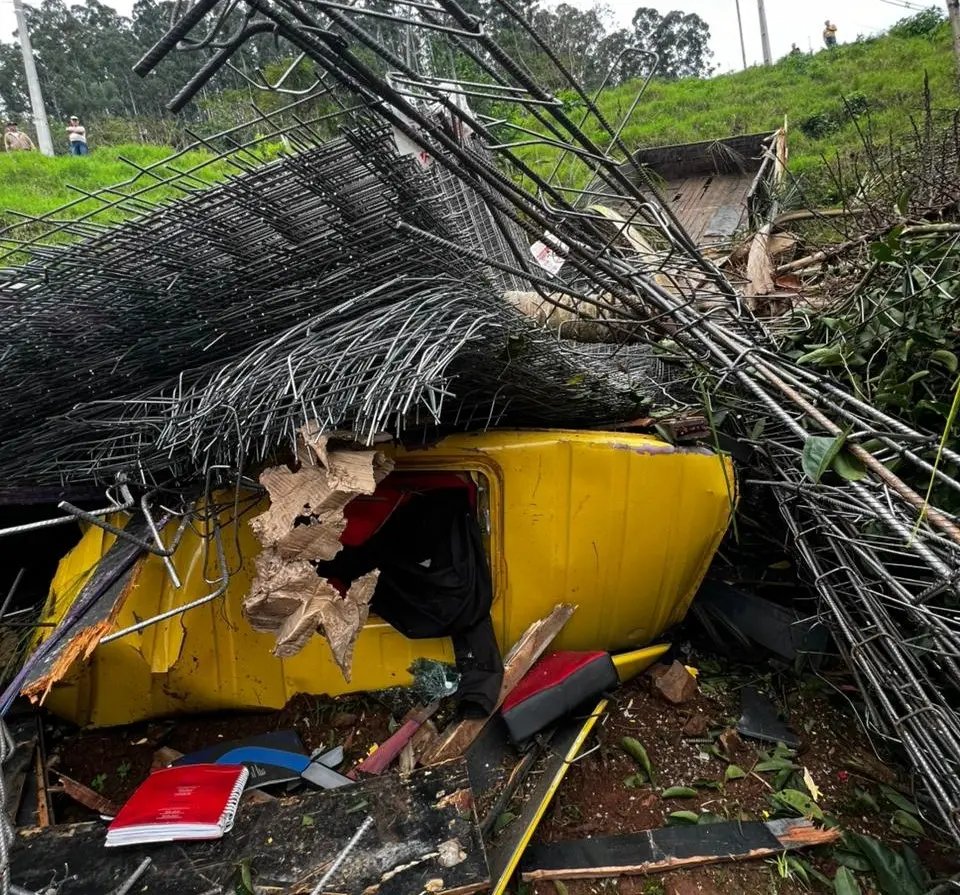 O veículo transportava uma carga de malhas de ferro, que desabou sobre a cabine, esmagando o compartimento do motorista. O condutor foi localizado preso às ferragens, já sem sinais vitais. Ele apresentava ferimentos graves, incluindo corte contuso no crânio, esmagamento das pernas e múltiplas fraturas.