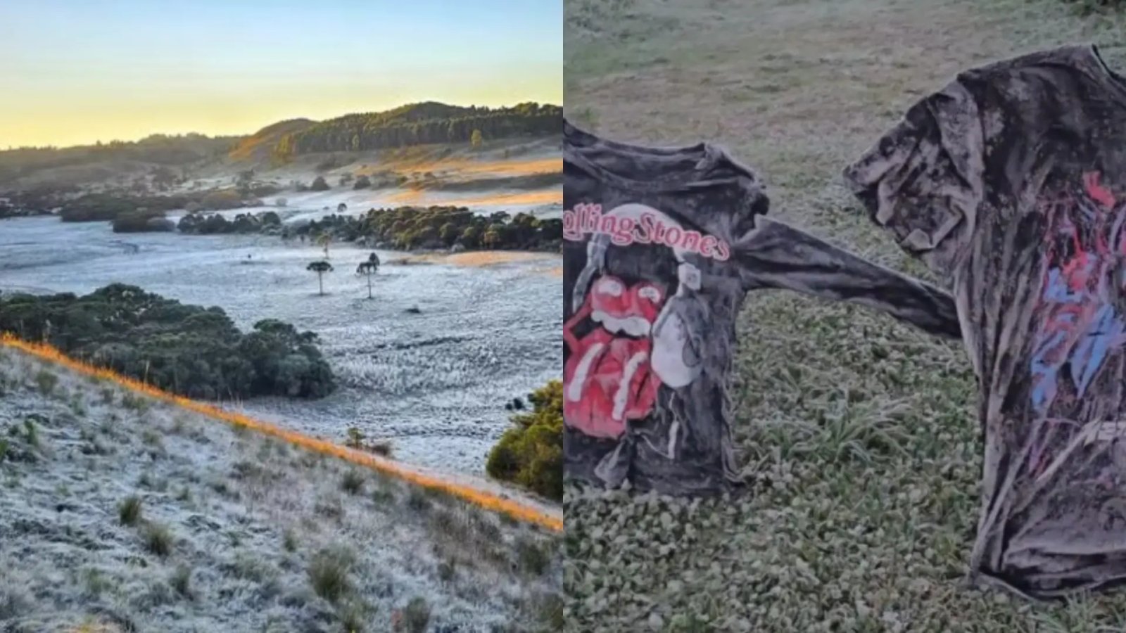As fotos anexadas à matéria foram tiradas no Vale dos Caminhos da Neve, em São Joaquim, e mostram a paisagem coberta pelo branco da geada. Camisetas foram congeladas pelas mínimas e aparecem em pé na fotografia. Os carros, em Bom Jardim da Serra, também não escaparam do fenômeno. Confira: