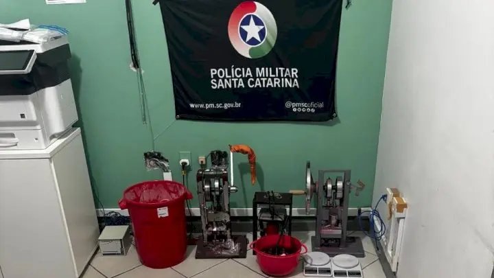 A ação policial revelou ainda um revólver calibre 32, com quatro munições intactas, duas balanças de precisão, três prensas industriais utilizadas na produção das drogas e diversos insumos químicos necessários para o processamento das substâncias. Uma caderneta com anotações do tráfico e um celular iPhone também foram apreendidos no local.