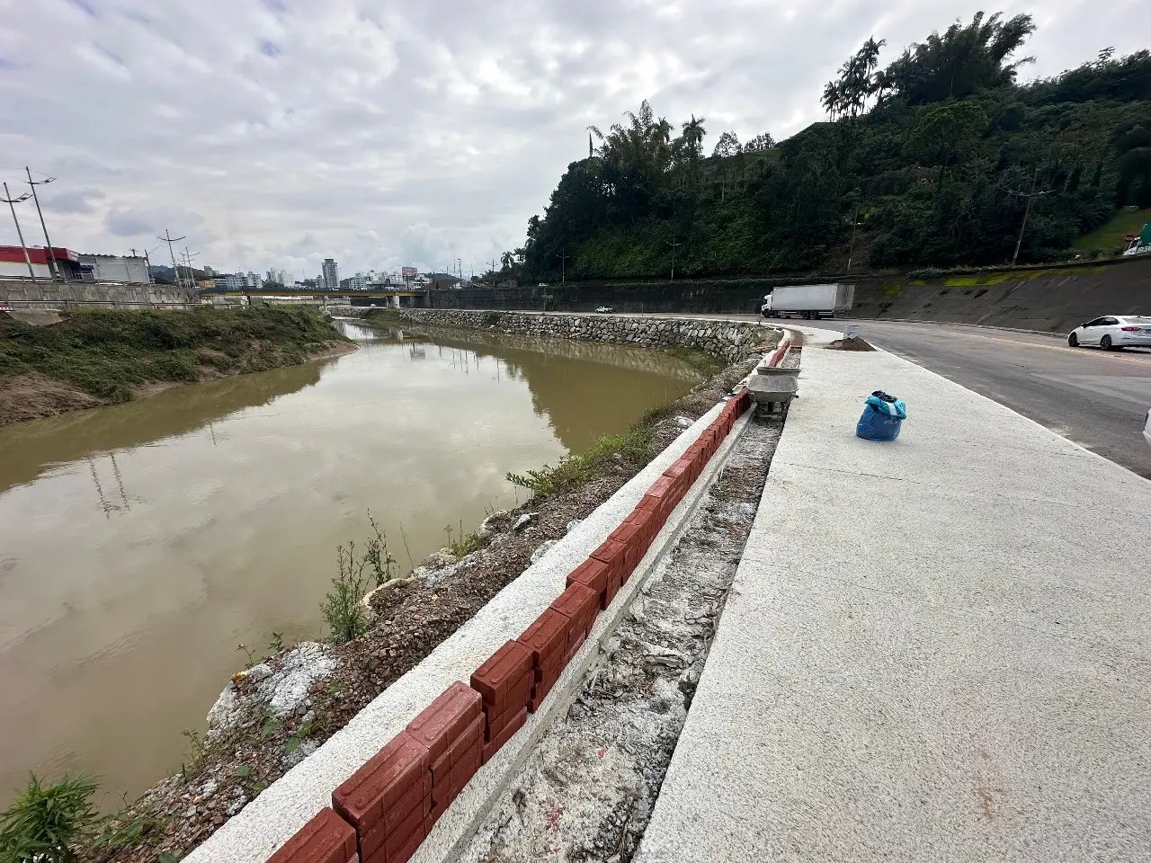 Começou nesta semana a conclusão da reconstrução das calçadas da Avenida Beira Rio, na margem direita, com a instalação de piso podotátil em diversos trechos. A intervenção ocorreu após os danos causados pelas enchentes do final do ano de 2023, que comprometeram grande parte da estrutura original do passeio público.