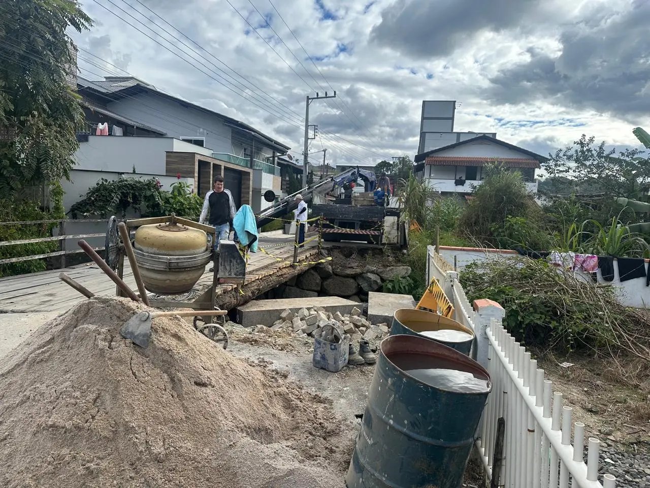 Nesta semana, foram iniciados os trabalhos de recuperação da estrutura da ponte localizada na Rua Valdir Geratti, no bairro Águas Claras. A intervenção compreende a reconstrução da cabeceira da ponte e melhorias estruturais em sua base, garantindo mais segurança e durabilidade para a via.