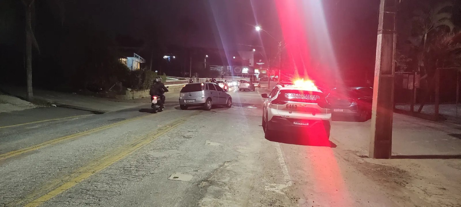 O motociclista sofreu ferimentos leves. Já os condutores dos dois carros não se feriram.