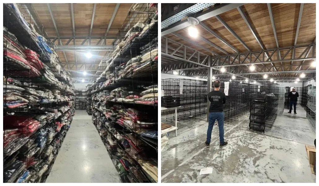 As investigações revelaram que um centro de comércio atacadista em Brusque funcionava como hub de distribuição de roupas e perfumes falsificados das mais diversas marcas para todo território catarinense.