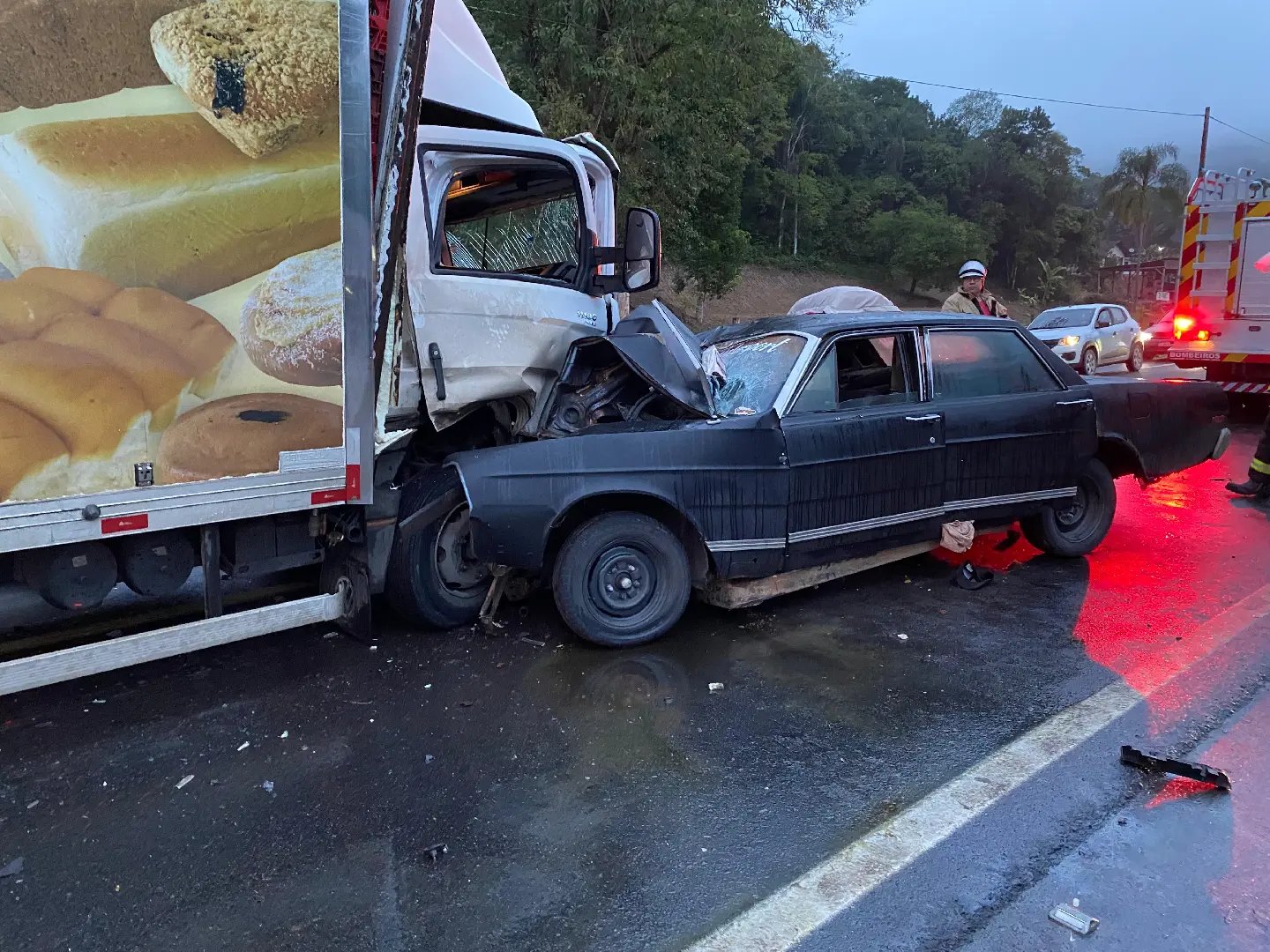 O grave acidente que tirou a vida de três pessoas na manhã desta sexta-feira (25), na BR-470, em Apiúna, foi gravado. A fatalidade foi registrada por volta das 05h, no quilômetro 102 da rodovia, no bairro Ribeirão Roxo.