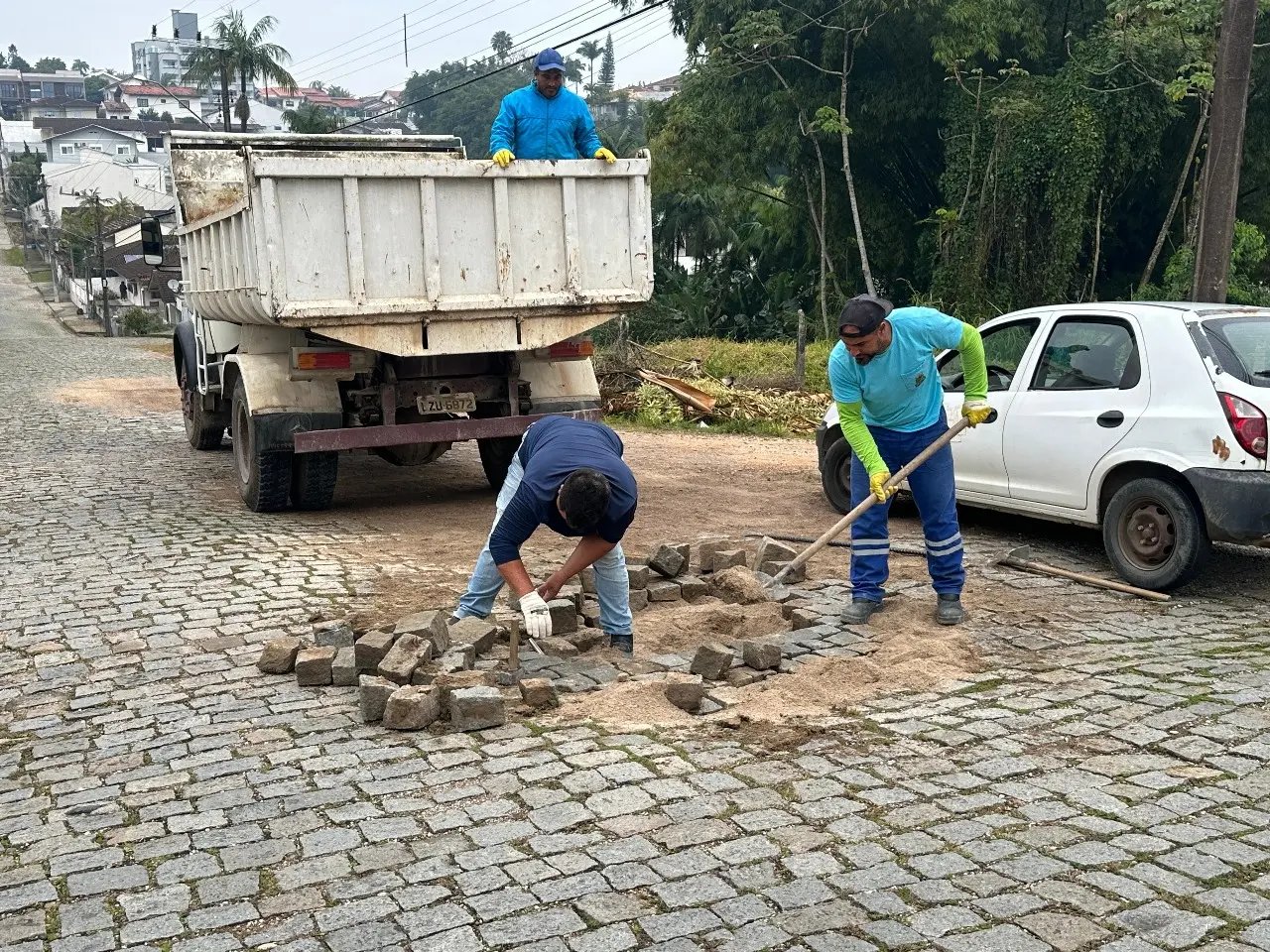 Já o encarregado do setor de calçamento, Clóvis Humberto de Souza, comentou sobre a execução técnica do trabalho. “Foram cinco dias intensos de serviço. Trabalhamos em vários pontos críticos da rua, com atenção especial ao nivelamento e ao encaixe correto das pedras, para garantir um calçamento uniforme e duradouro. A equipe se dedicou bastante e o resultado foi positivo”, finalizou.