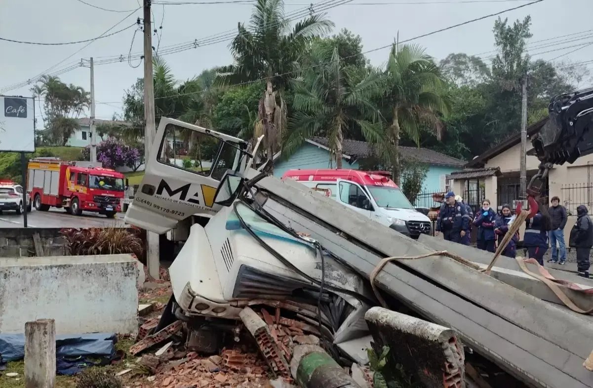 Um homem de aproximadamente 45 anos, que conduzia um caminhão, morreu após ser esmagado por vigas de concreto que se desprenderam da carreta e deslizaram sobre a cabine. O acidente ocorreu na manhã desta sexta-feira (25), por volta das 11h40, em Santo Amaro da Imperatriz, na Grande Florianópolis.