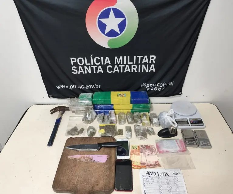 Ainda durante as buscas, foram encontrados aproximadamente quatro quilos de substância análoga à maconha, divididos em três tabletes e 20 porções já prontas para comercialização. Também foram apreendidas duas balanças de precisão, dois celulares e dinheiro.