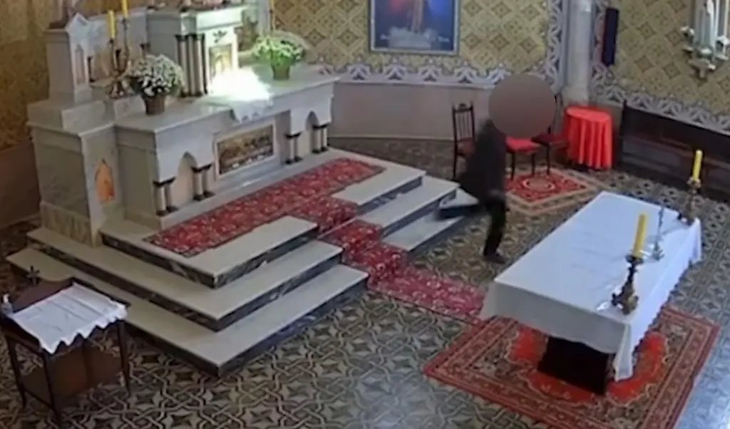 Imagens captadas por câmeras de segurança mostram o momento em que o suspeito entra na igreja, certifica-se de que o local está vazio, acende o explosivo e o posiciona sob uma toalha sobre o altar. Em seguida, ele deixa o local antes da explosão.