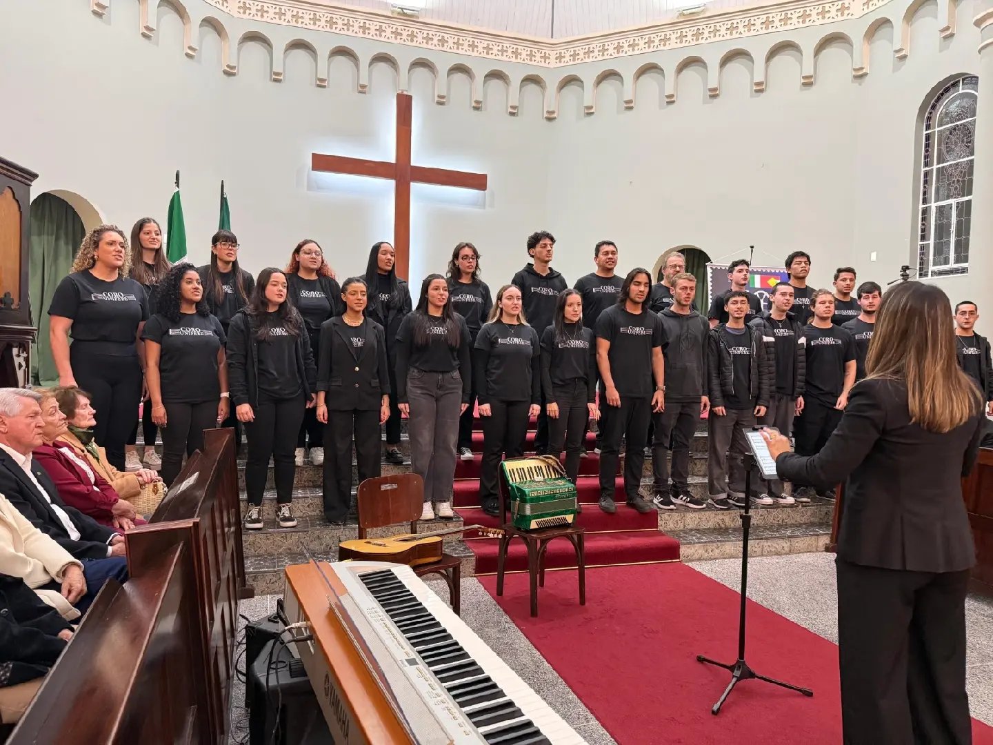 Um espetáculo de arte, história e pertencimento. O concerto do coro Ars Cantus, da cidade de Varese, na Itália, emocionou as centenas de pessoas que lotaram a Igreja Luterana de Brusque, na noite desta quinta-feira (31).